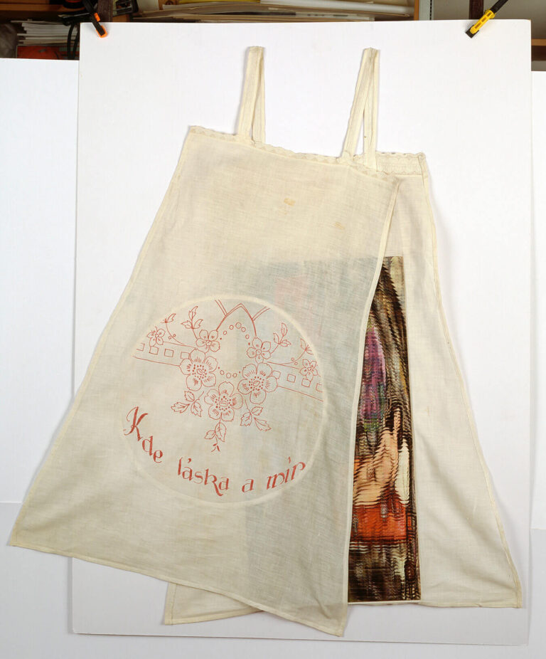 dimensione dei 2 rollages 61,5 x 30,5 cm/cad - dimensione della sottoveste piegata 100 x 64 cm
